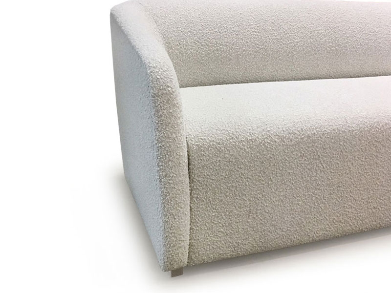 Graceful curves and elegant demeanor are outstanding features of the Mona sofa. Inspired by the daring, confidence and versatility of Mid Century design, our Mona has meticulous tailoring and wooden base supporting tight seat and back. Timeless style.